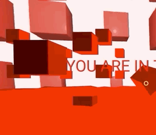 If you click the big cube in the middle, the room will go red for a second, and the cube rotates itself. Looking around, two giant red rotating spheres and those floating cubes provide a weird atmosphere to the scene. You need to get out of the room!